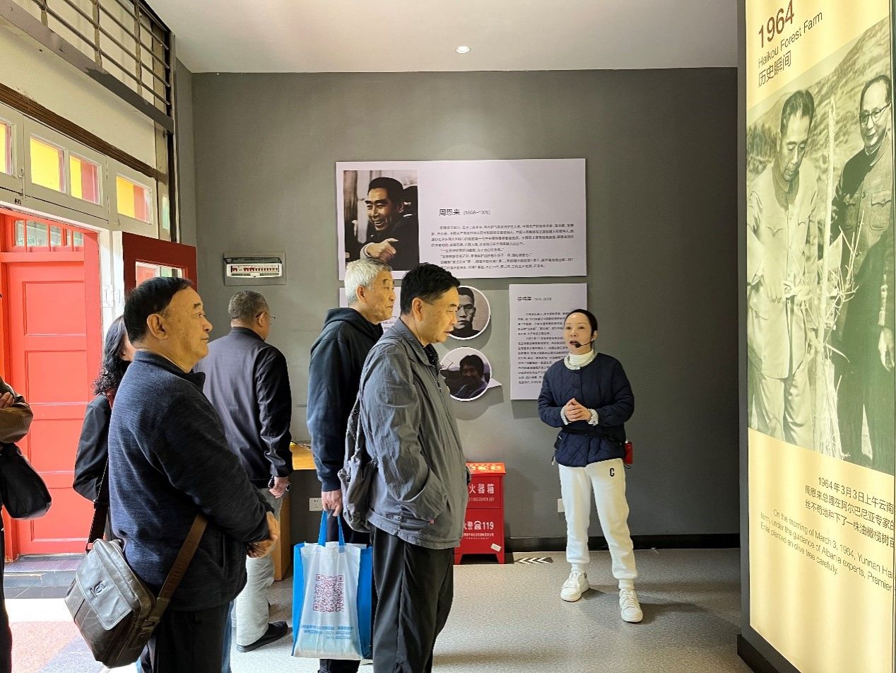 海口林场是承载着深厚红色记忆的“活教材”。在海口林场场史馆和昆明市林业展览馆,老党员们跟随讲解员的脚步,通过一幅幅老照片、一件件实物展陈、一段段影像记录,深入了解林场从1956年建场初期“荒山秃岭、风沙肆虐”到如今“绿树成荫、生态惠民”的沧桑巨变。在周恩来总理休息室(临时会议室),那斑驳的桌椅、泛黄的老照片、珍贵的影像资料,向全体党员无声诉说着那段激情燃烧的岁月。