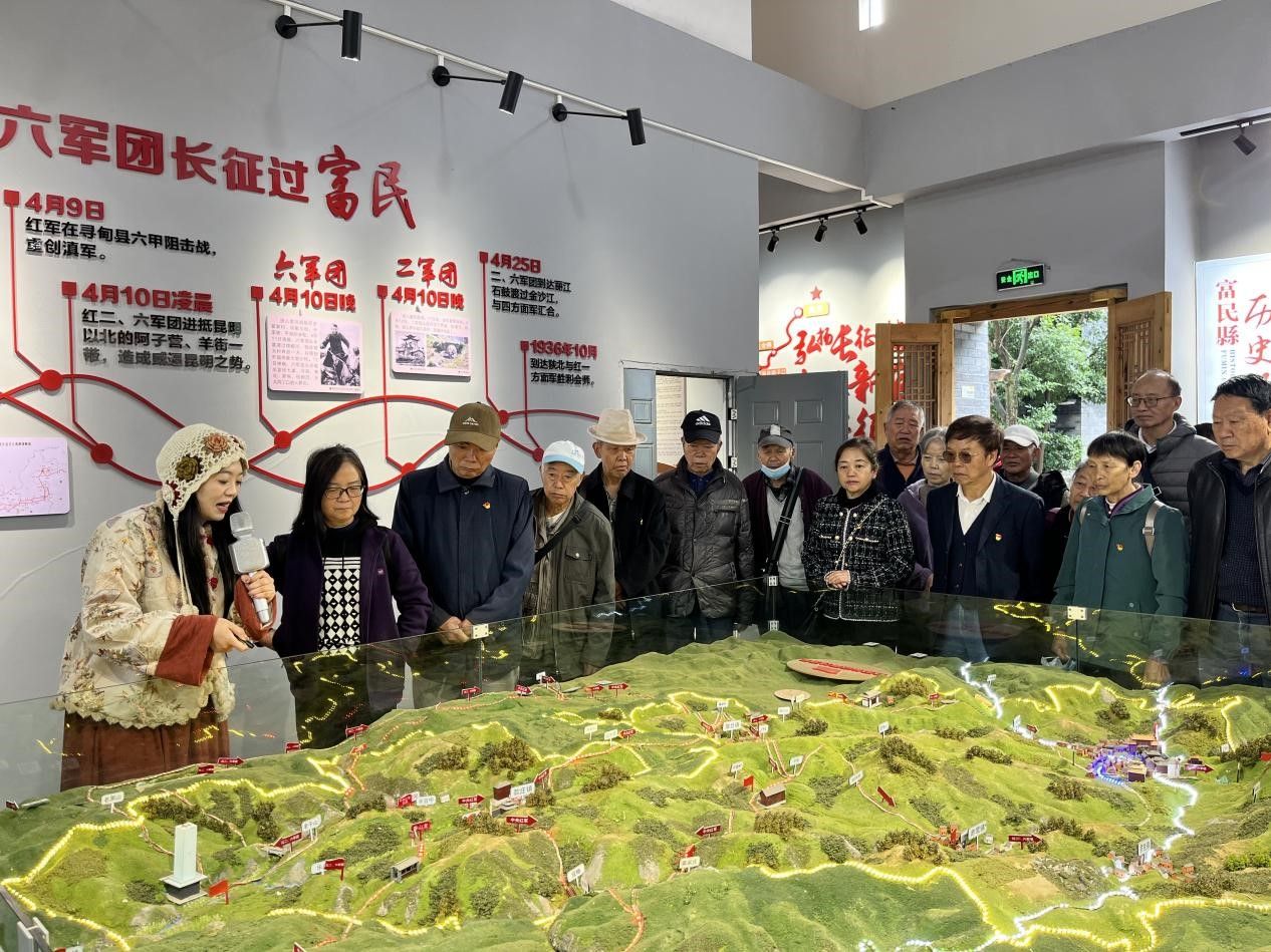 在纪念馆内,离退休党员们怀着崇敬的心情,在讲解员的引导下,缓步走进展厅。一幅幅珍贵的历史照片、一件件饱经沧桑的革命文物、一段段生动详实的文字解说,生动地展现了当年红军长征过富民时的艰难历程和英勇事迹。党员们驻足凝视,认真聆听讲解,仿佛穿越时空,回到了那个战火纷飞的年代,真切感受到了红军战士们坚定的理想信念、顽强的革命意志和不怕牺牲的崇高精神。